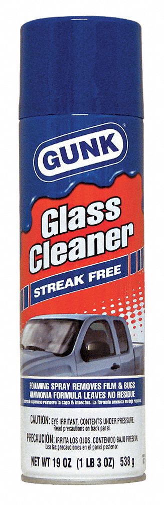 Gunk streak free glass cleaner is an all purpose glass and hard surface cleaner leaves no film or residue cleans windshields glass windows mirrors appliances ceramic tile chrome stainless steel and aluminum.